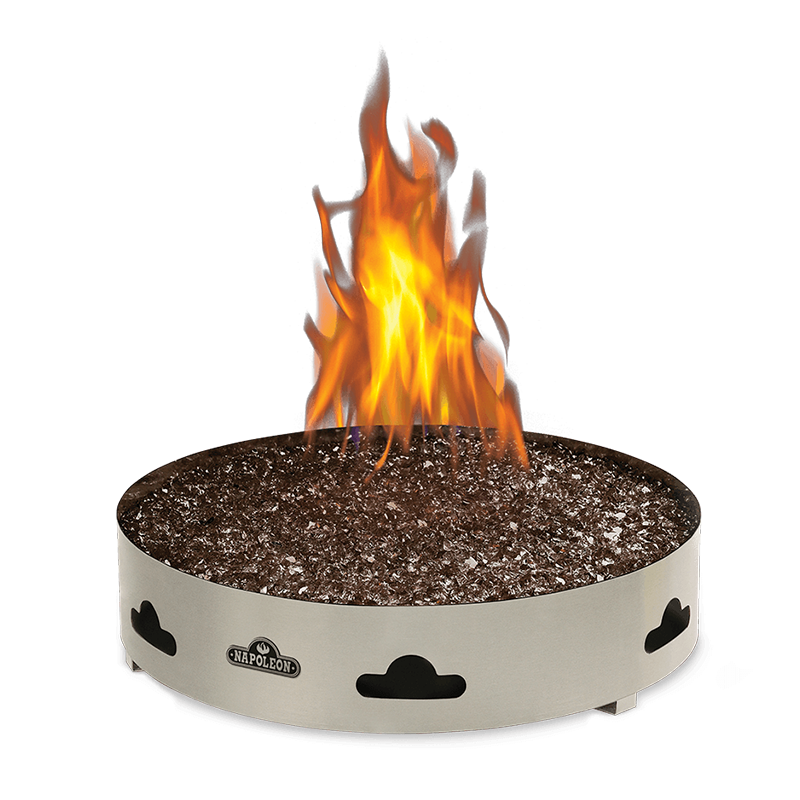 There is nothing more enjoyable than spending time outdoors with family and friends. The Napoleon Patioflame® with Glass allows you to extend your outdoor season whether it be at the cottage, camping or in your backyard. The burner is constructed from all stainless steel for maximum outdoor durability and weather resistance. Available with Napoleon’s exclusive Topaz CRYSTALINE™ ember bed, the Patioflame® with Glass; is approved for use on wooden decks, stone or brick patios and concrete.